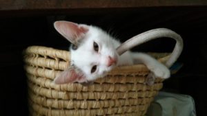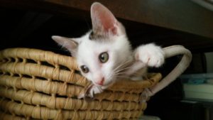 ニャーンと鳴いているつもりみたいですが、声が出ていない空気音のみ…