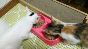 まだ、カリカリはふやかさないと食べられませんが、パウチの餌と混ぜて食べてます。