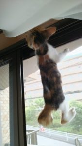 最中は、ついこの前まで網戸の1番上までは登れませんでした。