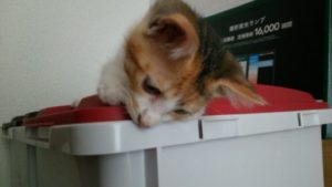 ちょっとオットリな大福は、ごみ箱に登れなくてずり落ちている姿が見られます。