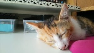 PCを使って作業をしていると、何やら最中はうろうろしています。