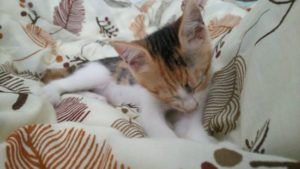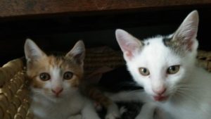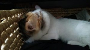 ふたりのお気に入り、ベッドの下の籠でくつろいでいます。