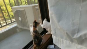 それでも外の景色は魅力的なのか、窓を開けるとそこに集まっています。