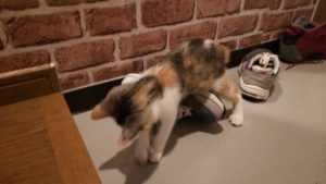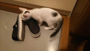 最近、靴箱から靴を出しておくと、紐がほどけています。