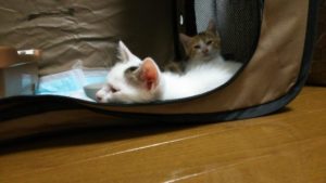 ちなみに、白地にブチは男の子、三毛が女の子です。