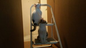 棚の上のものと取ろうと脚立を出したところふたりしてその上を占拠してしまいました.