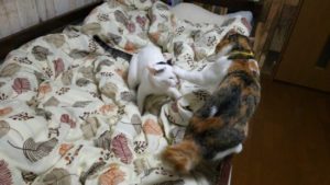 さっきまで仲良く寝てたのにいきなりバトルになってます。