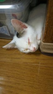 そして、挟まった状態で寝てしまいます。