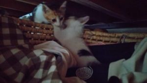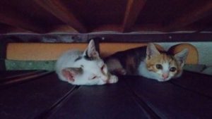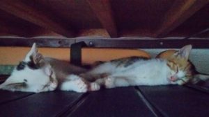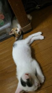 ベッドの下の隙間で2人そろってお休みモード…