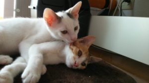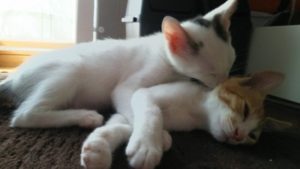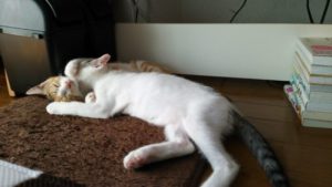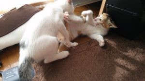 そこに大福がやってきて取っ組み合いのじゃれ合いが開始される。