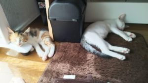 細かいものがある脱衣所はにゃん達の好奇心を駆り立てます。