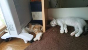 PCデスク周辺がにゃん達のお休みポイントになっています