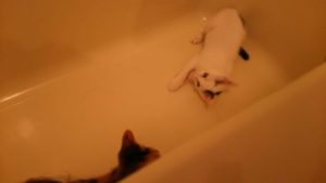 お風呂の湯船の中なので、音が響く・・・