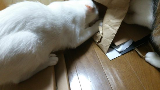 袋とか、段ボールとか紙ものが大好きなふたり。 袋を見ると中に入ったり、カミカミ・バリバリしています。 穴があくまでかじったのね? 横に...