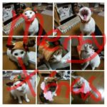 今年もクリスマスはお仕事です。 雰囲気だけでも味わいたくなって、 猫たちに被り物を購入してみました。 がしかし、少し大きい被り...